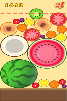 通过滑动屏幕,让相同的水果方块合并在一起。