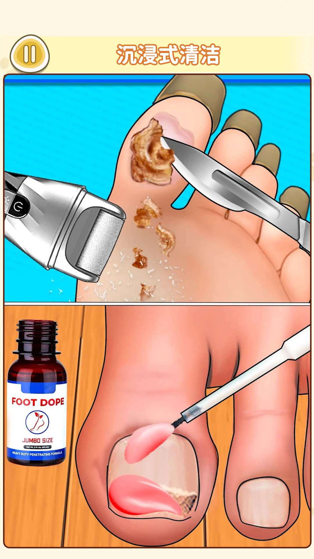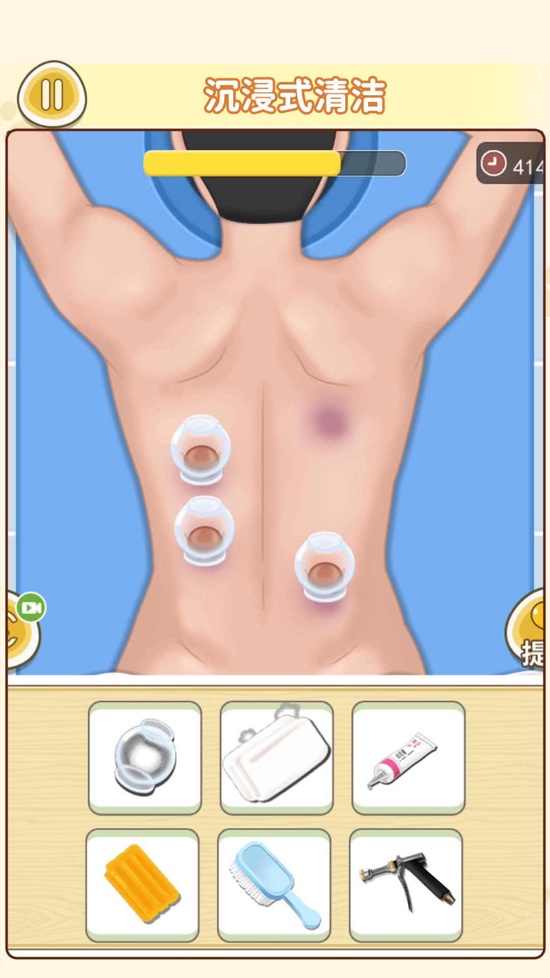 2、玩家们将使用不同工具来为顾客们清理身体上的污渍,根据顾客的症状来选择合适的治疗模式