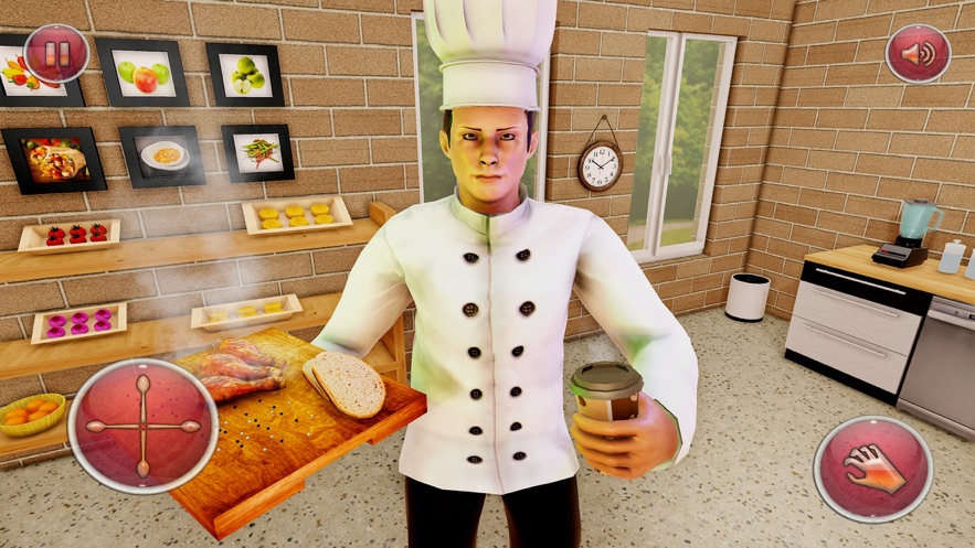 1、虚拟厨师厨房模拟器是一款欧美风格的厨师主题模拟游戏。
