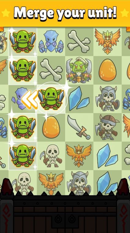 1、独特的合并玩法:通过合并各种怪物来收集资源来升级城堡,创造独特的游戏体验。