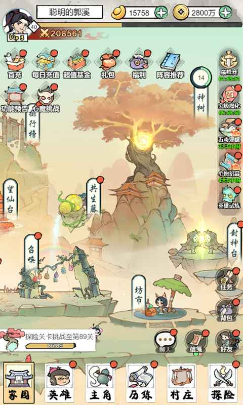 2.这是一款竖版放置手游,以葫芦娃救爷爷为剧情内容开展了多种趣味玩法模式和内容。