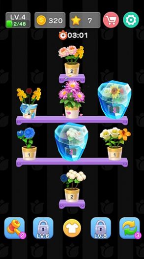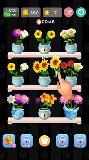 2、将插花艺术与消消乐玩法完美结合,让玩家在游戏中领略到插花的魅力,感受到轻松愉快的氛围;