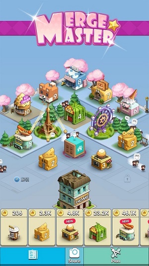 3、城市扩张的挑战:通过不断融合的升级和拆解玩法,将小镇变成小城市,拓展更多的土地来建设城市。