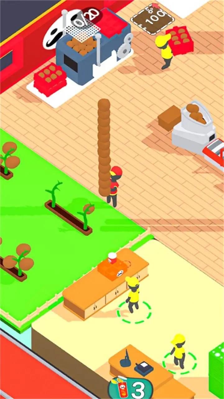 1、可以看到自己工厂的薯片生产线、工人、仓库等各个环节,以及进行各种操作时的动画效果;