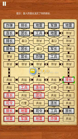 3、每把军棋中,你的指挥官是最大的军棋,工兵是最小的军棋。你需要仔细思考才能找到最佳位置。