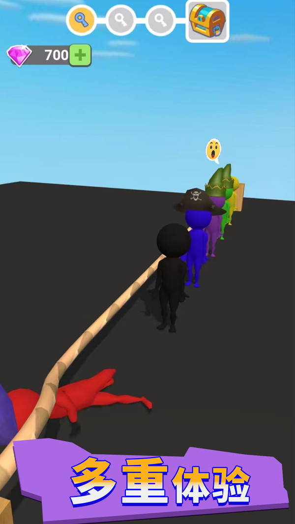 1、当玩家选择了关卡并开始游戏后,会看到一个大绳,需要控制自己的人物跳上大绳并保持平衡;
