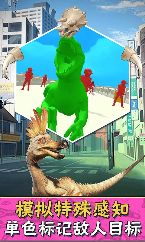 1、恐龙元素让玩家的冒险更加刺激。各种强大的恐龙带来不同的玩法,你可以在城市中自由冒险;