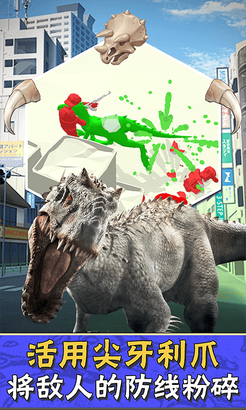 1、恐龙模拟游戏低模型风格,简单粗暴。玩家需要控制游戏中的恐龙跑进城市造成各种破坏;