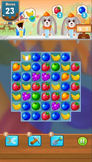 2、简单易学的操作方式,用你的手指滑动屏幕,尽可能多的连接水果,创造新鲜的果汁;
