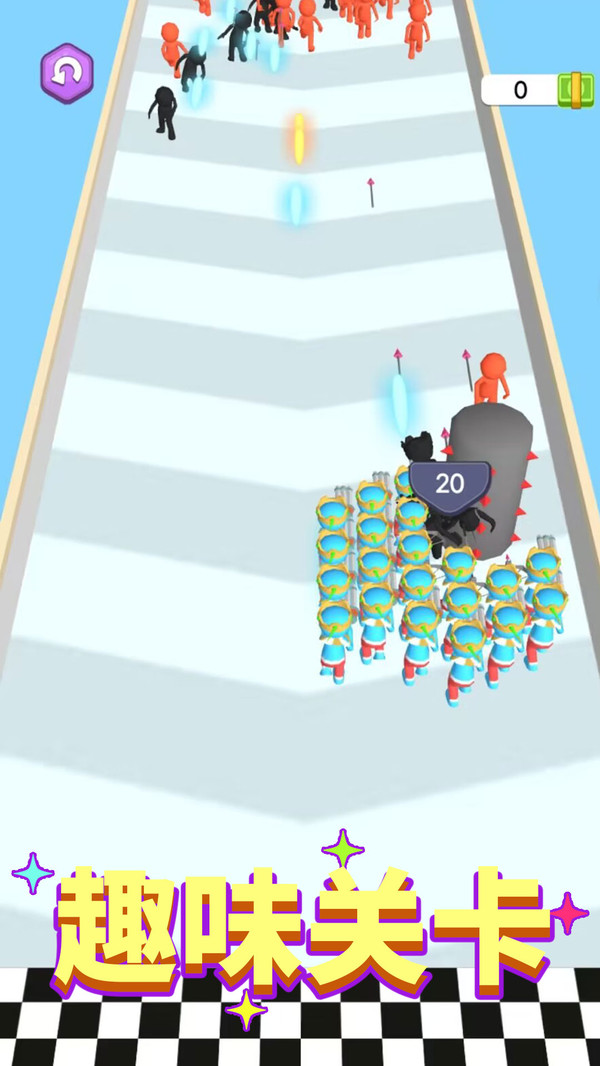 2、玩家不仅需要跑酷,还需要进行射击,击败敌人并将他们变成自己的队伍成员,扩充自己的军队以达到通关条件。