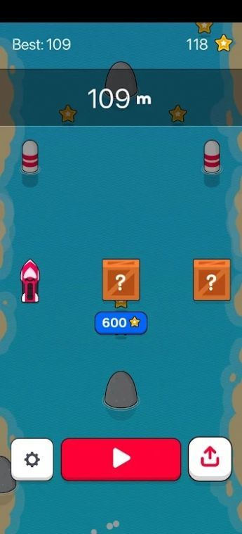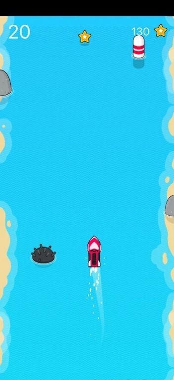 1、通过点击屏幕控制赛艇的前进速度,并躲避障碍物;