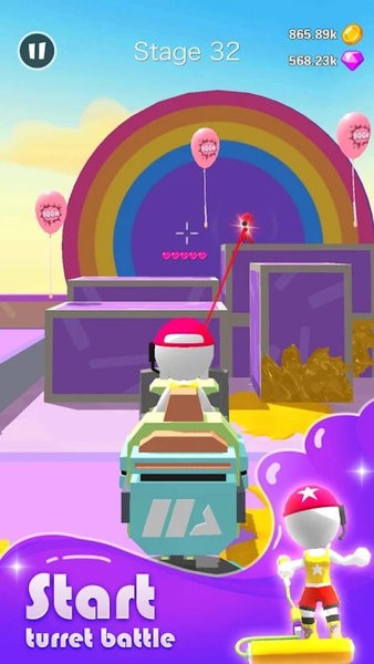 2、海量关卡设计等待玩家挑战。不同的关卡有不同的颜色区域和地形。你需要选择相应的武器才能更好的射击;