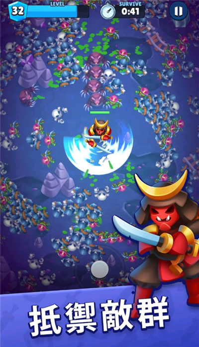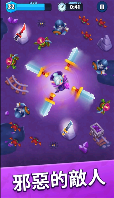 敌人将继续包围你。你必须活下去!使用剑、弓和法术来生存。不要忘记收集被击败的敌人会掉落的宝物和星星。