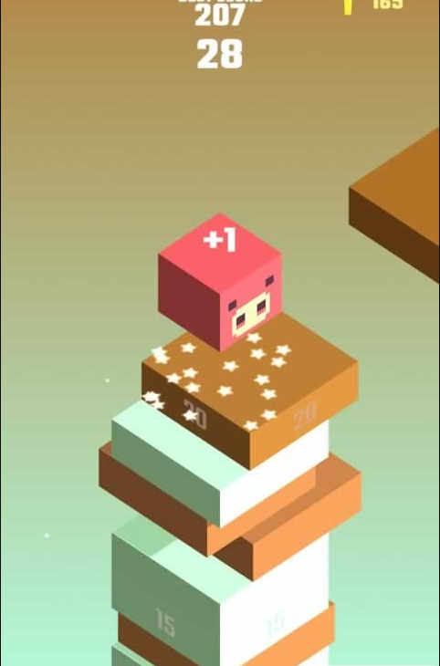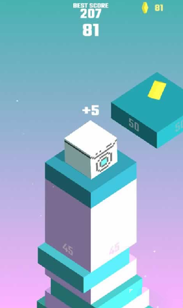 每当有一个方块飞过来的时候,你就需要将小方块跳跃起来,稳稳的落在上面,保证自己一直在整个建筑的最上层。