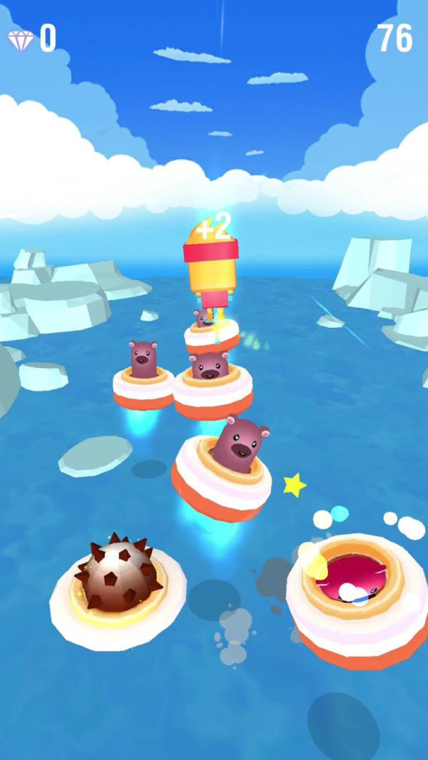 在跳跃的过程中千万不要掉入到水中,不然比赛失败,所以要把握好距离。