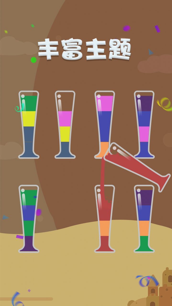1、我倒水贼棒是一款很有挑战的休闲游戏,在游戏中,玩家需要整理出相同颜色的水。