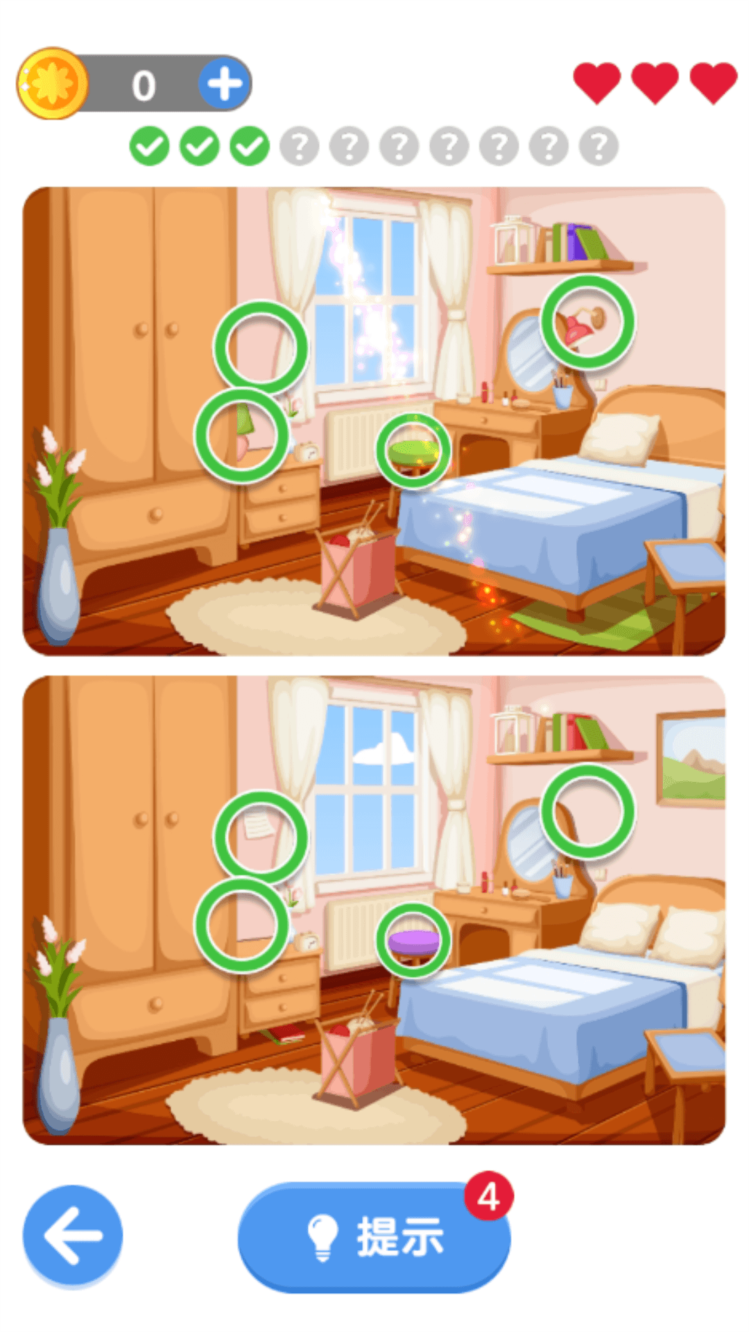 1、提示功能能够帮助玩家找到不同之处,可用次数有限,需要谨慎使用;