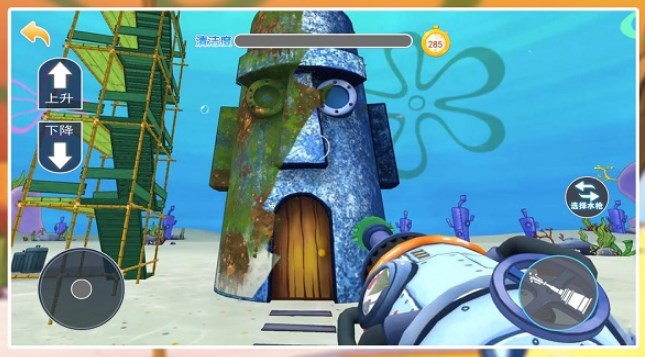 2、你将化身为一名海底清洁工,负责清洁海绵宝宝和蟹老板的房子