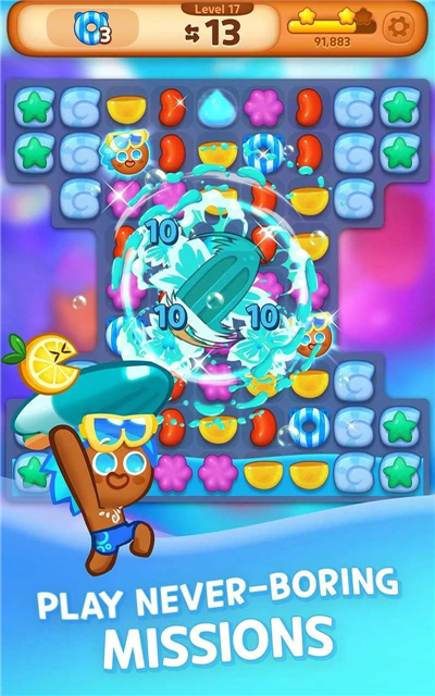 2、在美味的食物世界中来找到更多的伙伴也有用的道具,轻松破除障碍完成消除挑战;