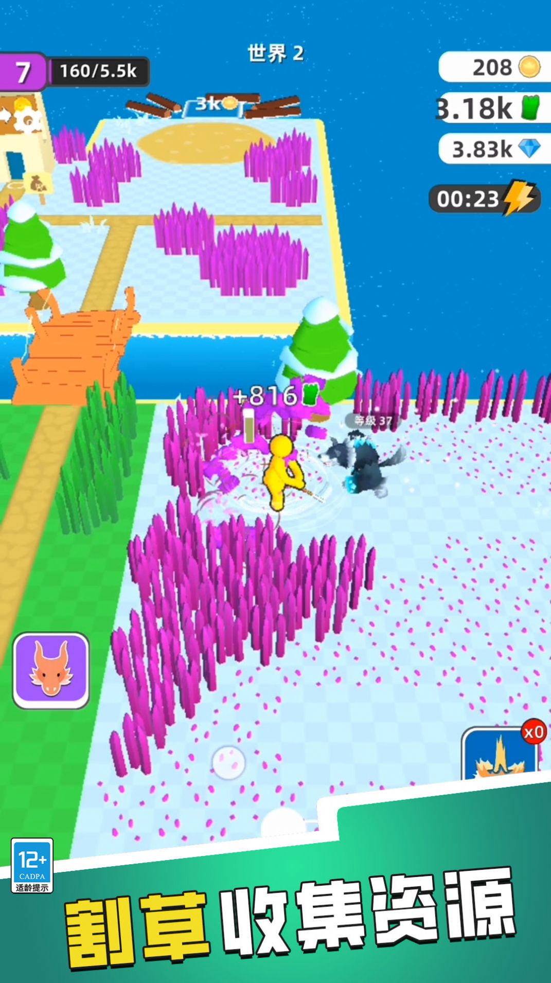 1、享受割草的旅程,在各个地方都能够收集资源的;