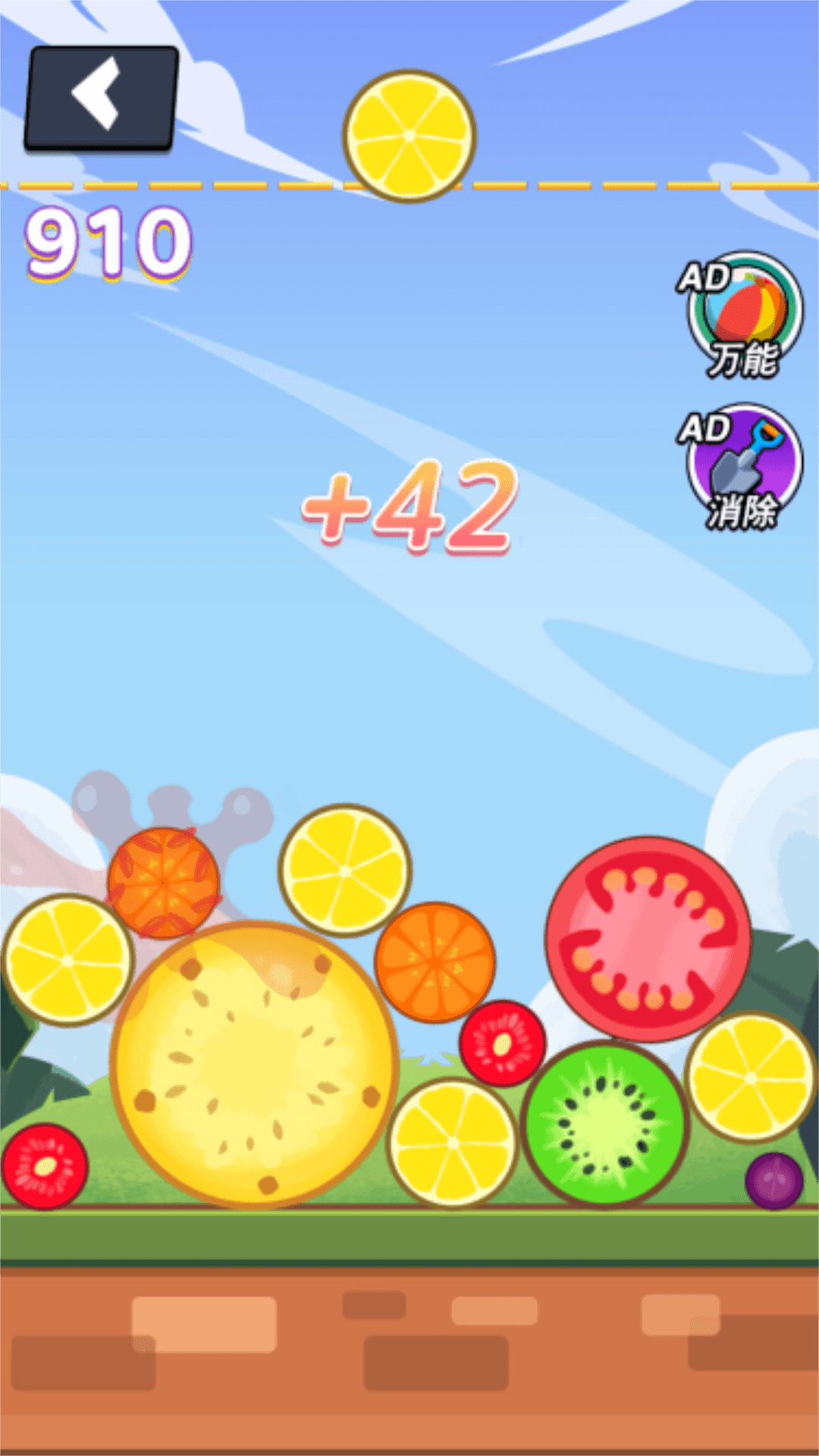 3、指尖玩转合成,轻松拉动水果合并成为更高级的水果