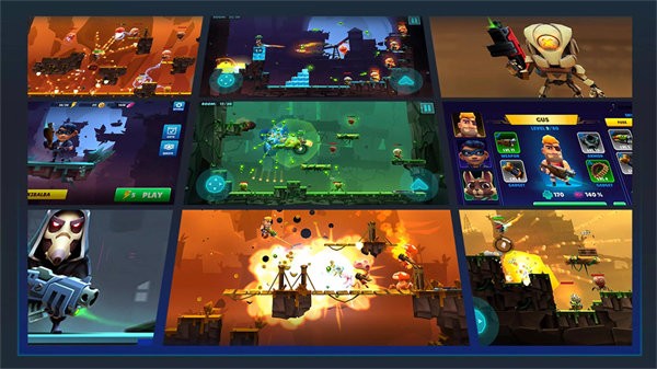 3、在这款全新的不间断动作平台射击游戏中,使用威力强大的枪支和一队英雄来射击外星人,重新夺回被外星人侵扰的世界!