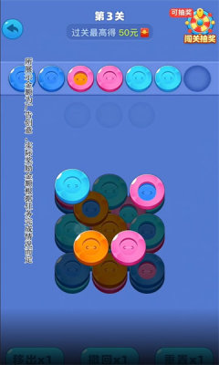 1. 通过消除相邻的相同颜色按钮来获得金币奖励,金币可以用来购买道具或者解锁新的关卡。