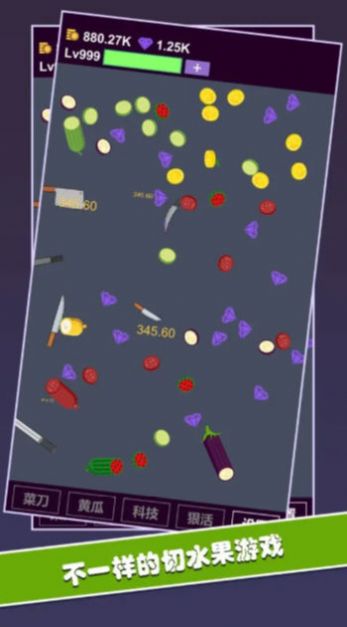 2、金币币主要用于升级刀具,提高切割效率,获得更多奖励。 尽量切片,每一片都是获得奖励的机会。