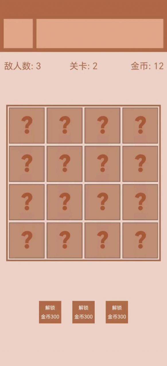 2、每回合开始时,你可以点击问号格子,翻开并揭示其中的敌人或放置我方英雄。每个格子都可能藏有不同类型的敌人,他们拥有不同的攻击能力和血量。