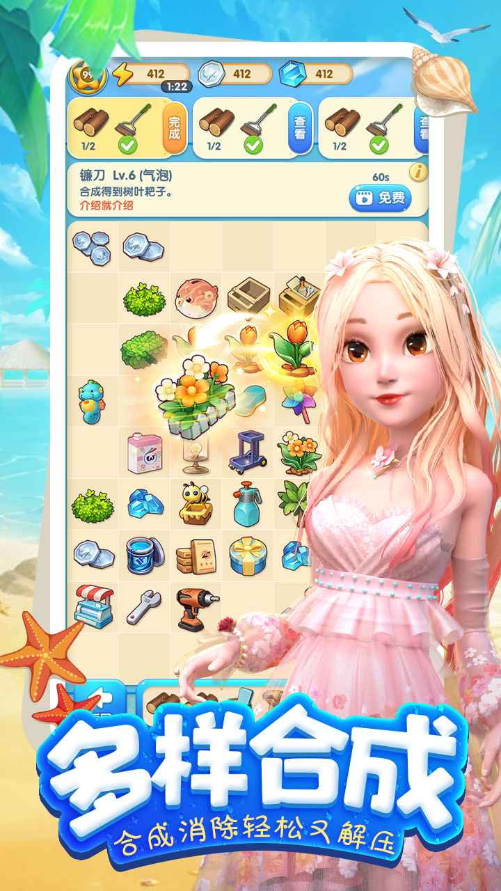 1.在海岛小镇建造乐园,可以通过商城购买提示道具,帮助玩家快速的进行合并工作。
