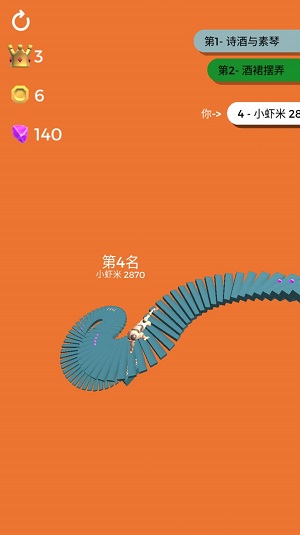 2、用手指滑动控制方向,让你始终保持正确的角度,与更多的对手竞争;