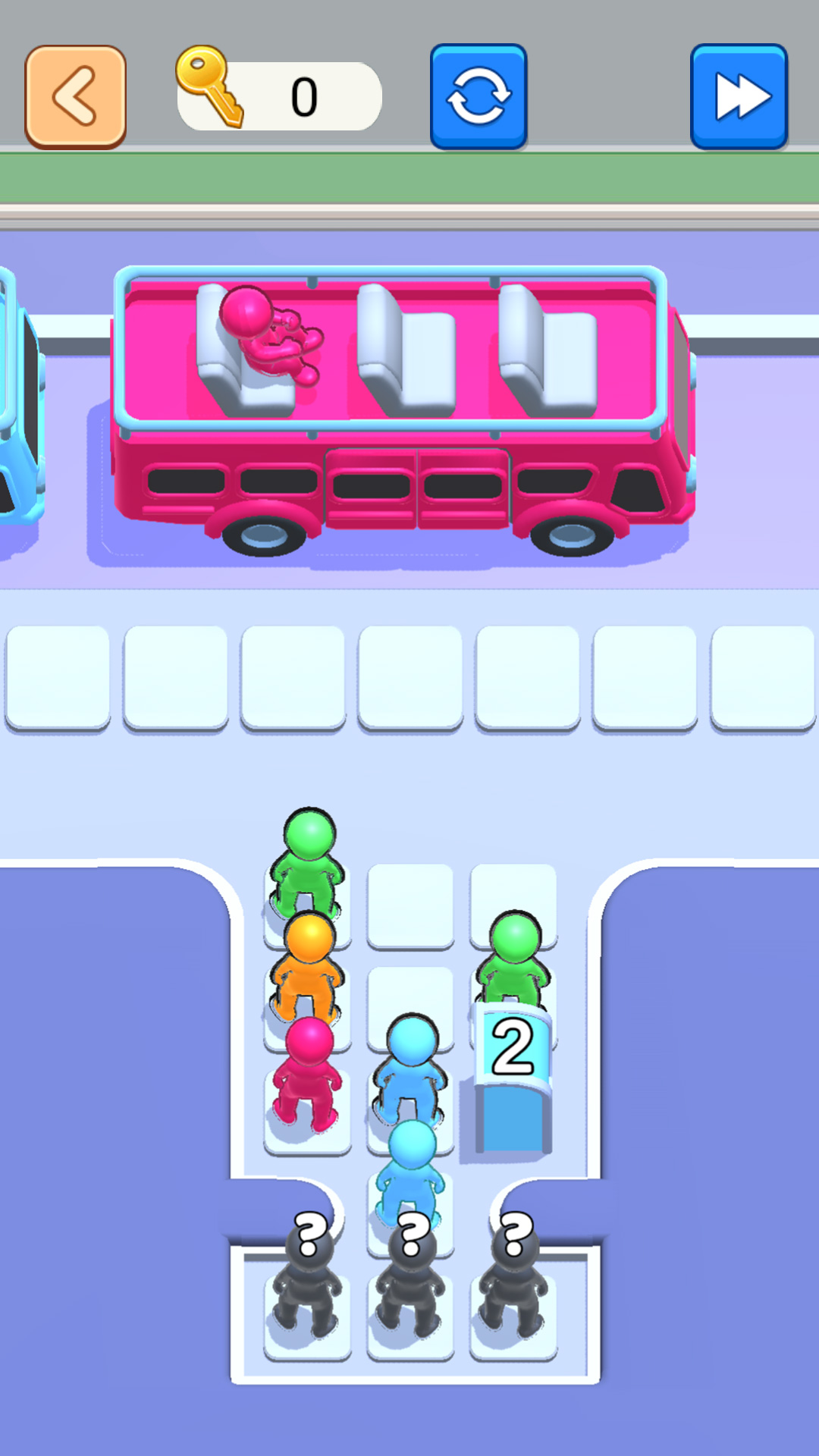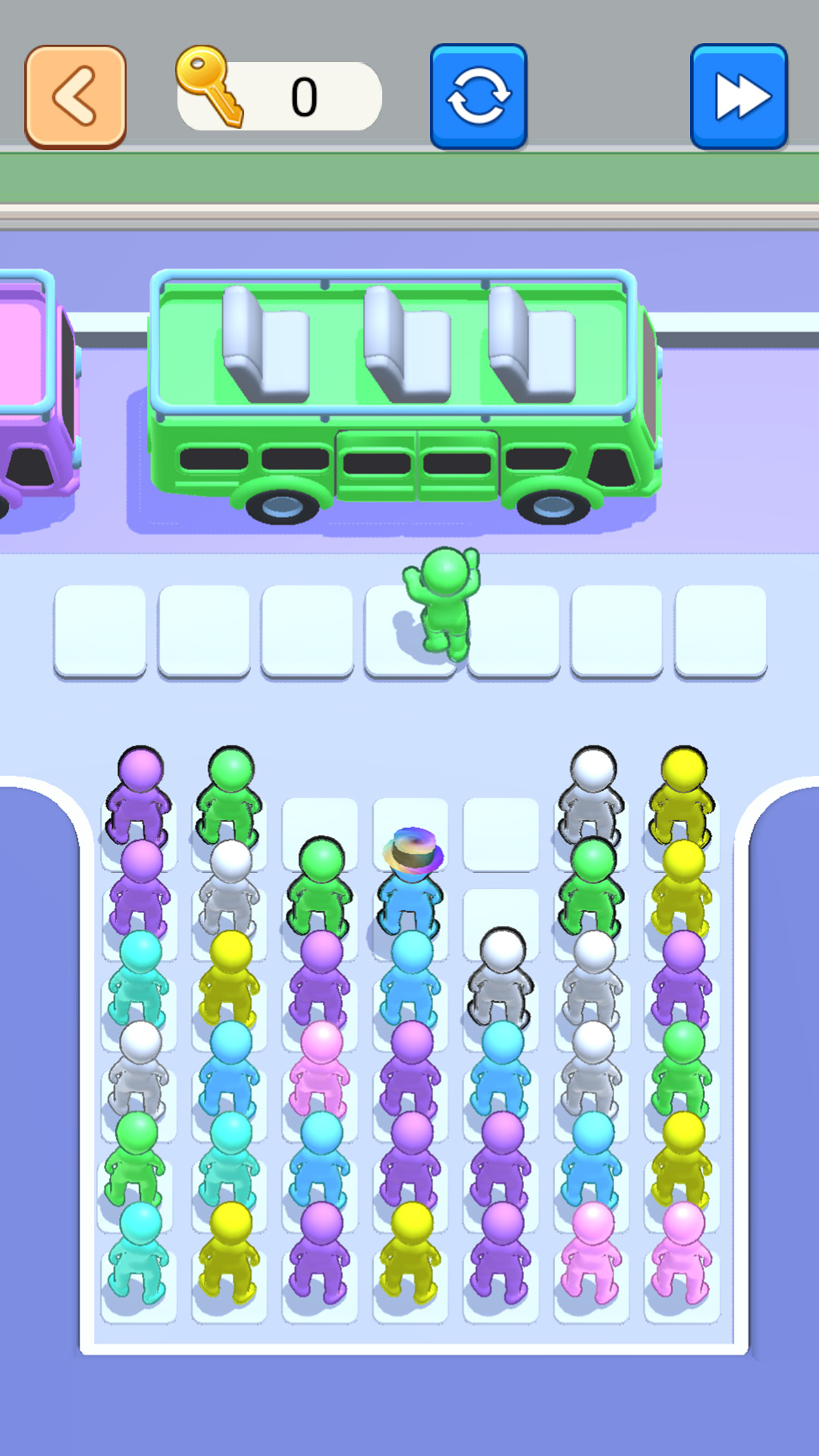 3、不同颜色的小人只能乘坐对应颜色的车子,如果玩家放错了位置,小人将无法上车。