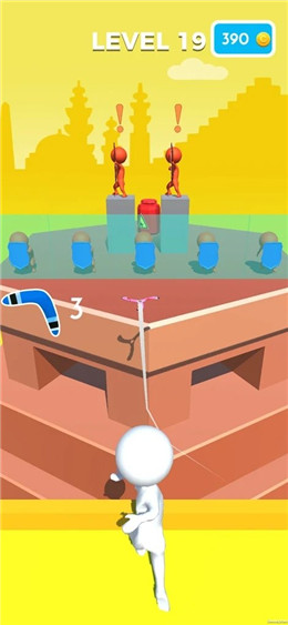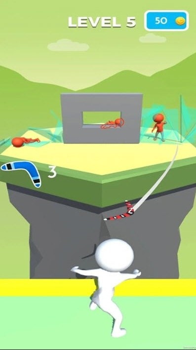 游戏中你还需要在回旋镖飞回来的时候接住它,完成游戏的任务。