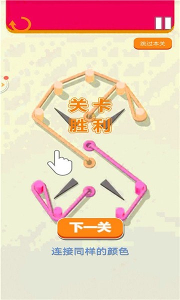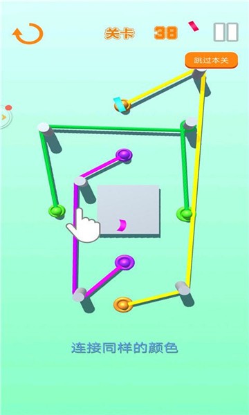 2、玩家需要将不同的绳子连接到相同颜色的界面上,且不能交叉。