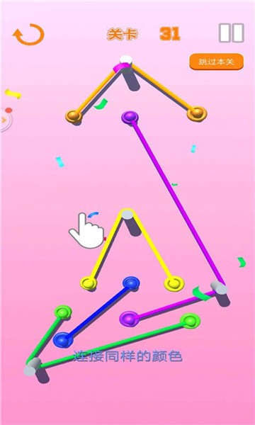 1、游戏非常简单,你需要用绳子连接所有的点。移动并解开它们。这个游戏比看起来更难!