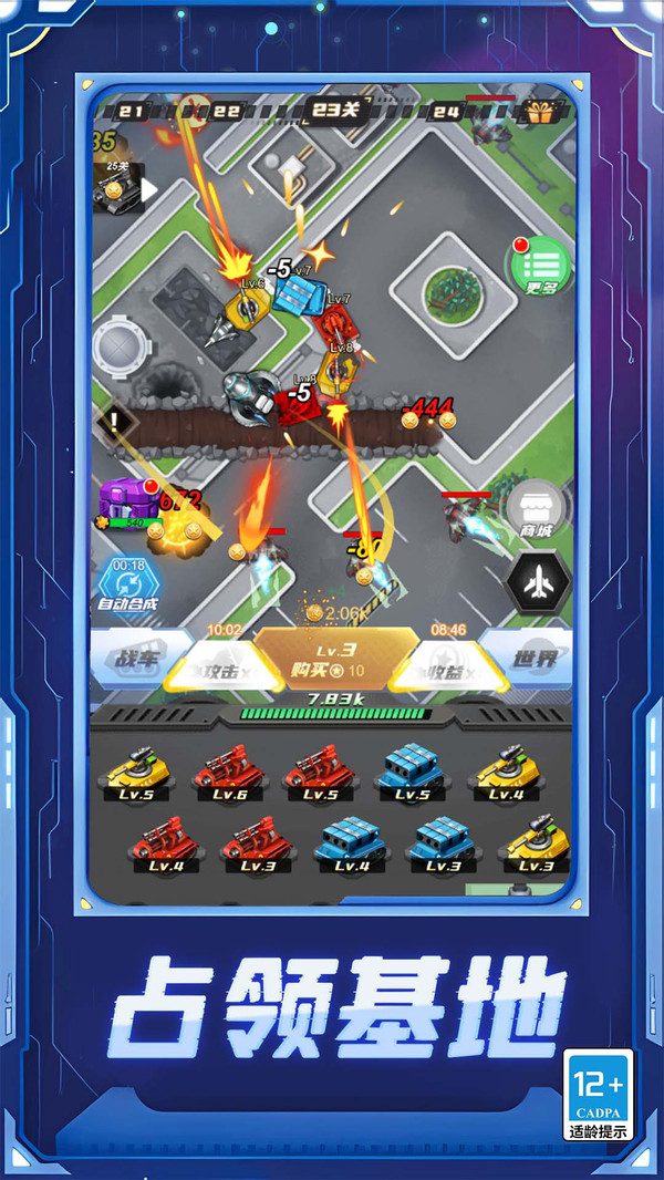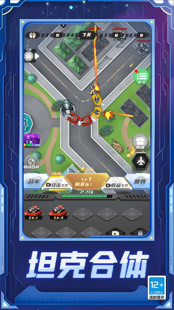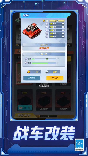 2、不同的技能和装备可以帮助战车增加攻击力、防御力、移动速度等属性;