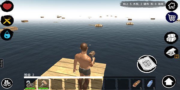 2、你所拥有的只是一个带绳子的钩子和一个木筏。你所要做的就是在这里生存。
