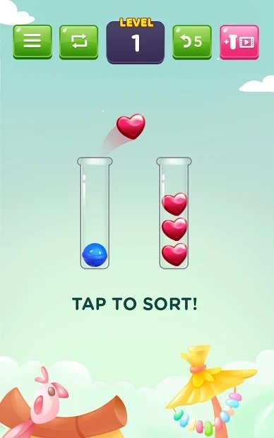 非常的考验玩家们的思维逻辑能力,将所有相同颜色的糖果放置在同一个地方完成排序操作。