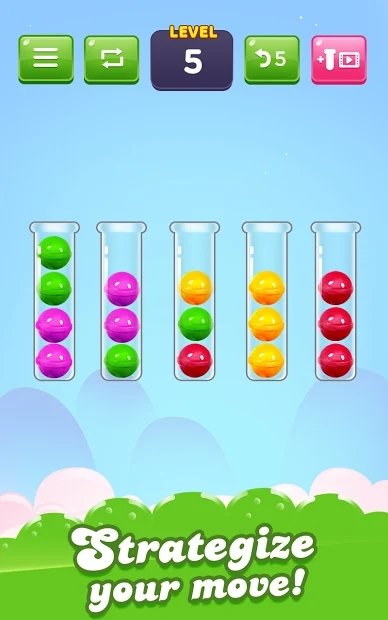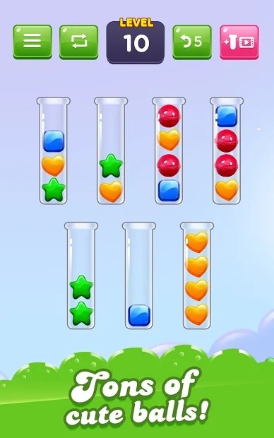 糖果分类排序的玩法非常的考验玩家们的逻辑脑力,在游戏内拥有着许许多多不同颜色的糖果,玩家们的任务就是通过移动来使这些相同颜色的糖果能够到达同一个试管之中,不过玩家们要注意的是,每一次只能够移动一个糖果,你该如何在最少的步数之中完成排序的任务呢,快来下载游戏挑战一下吧。