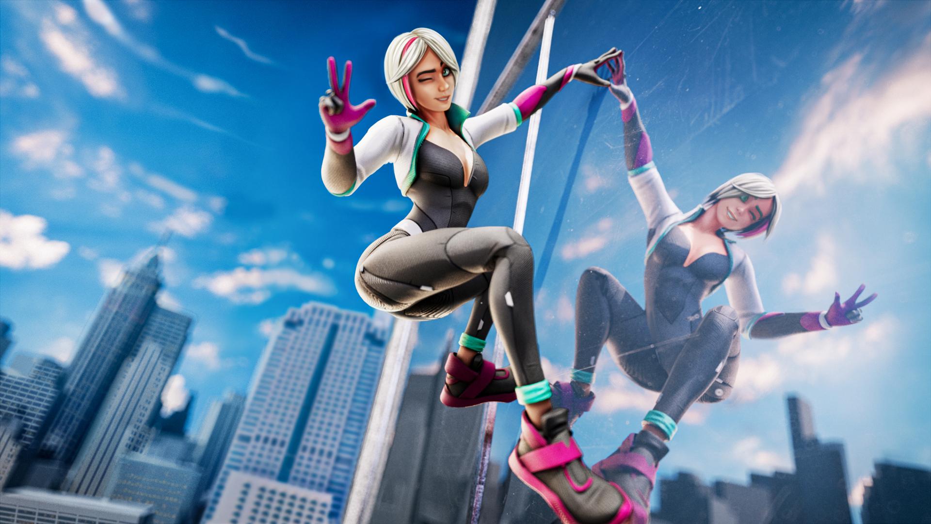 1、漫画风格的视觉效果,呈现原汁原味的蜘蛛女孩形象和城市背景;