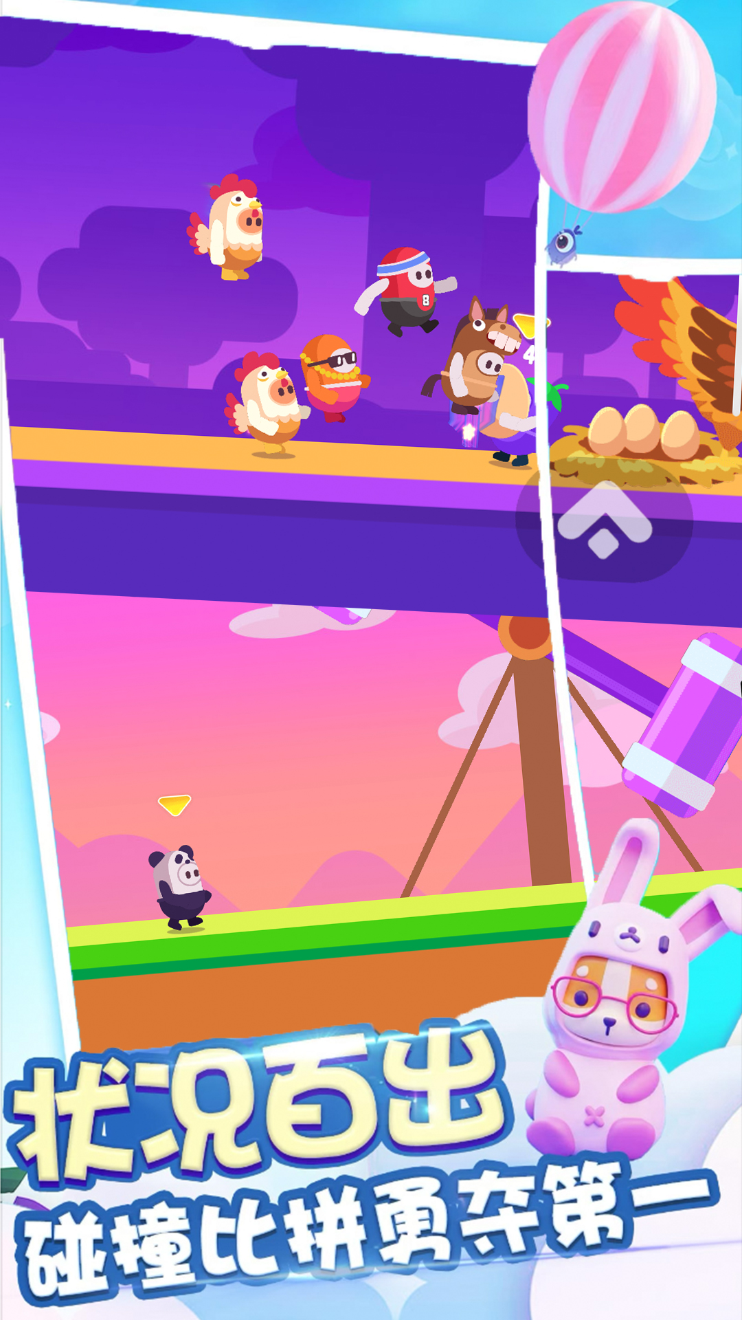 1、多人斗鸡游戏。游戏卡通风格,支持多人在线竞技,更有猜水果、踢球、抢鸡蛋的体验;