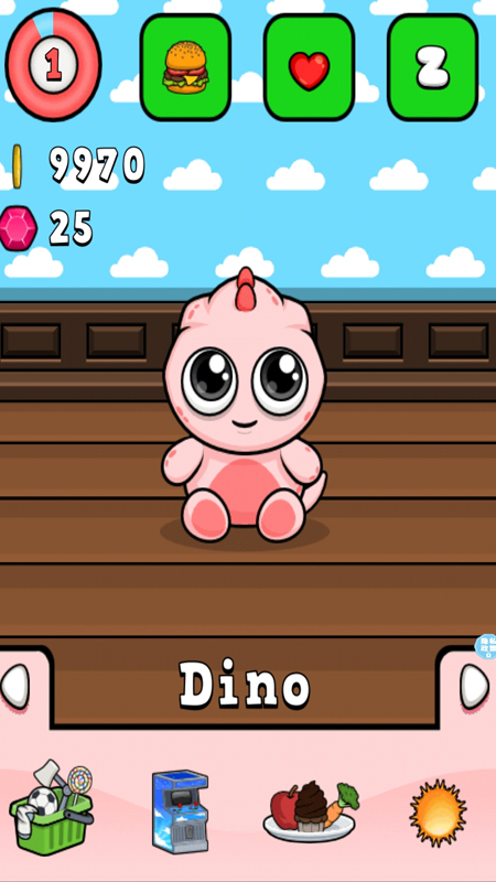 3、玩家在这里,游戏中的角色会照顾宠物,你会在这里和他一起成长,照顾你的小恐龙。