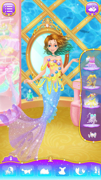 2、玩家扮演人鱼公主,利用各种装扮工具为她准备漂亮的婚纱。