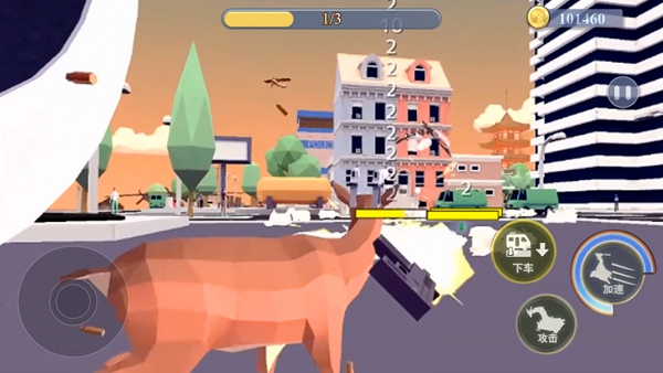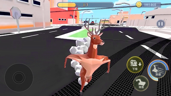 2、在游戏中,玩家扮演一只鹿的角色,在城市中进行大量的破坏。