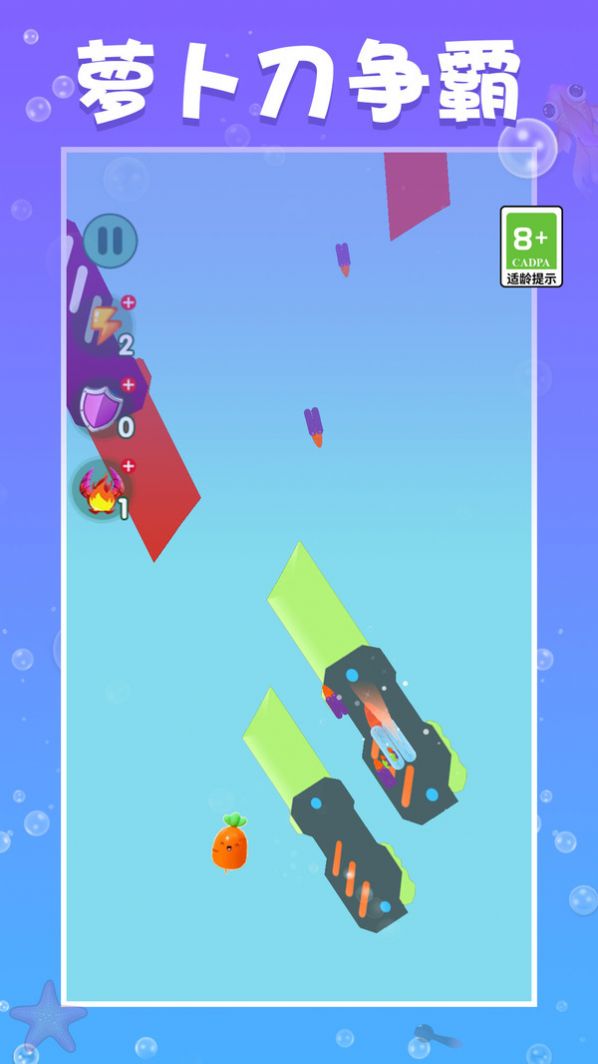 2、操作非常简单,只需要通过方向键控制,让萝卜刀避免障碍并击倒敌人。