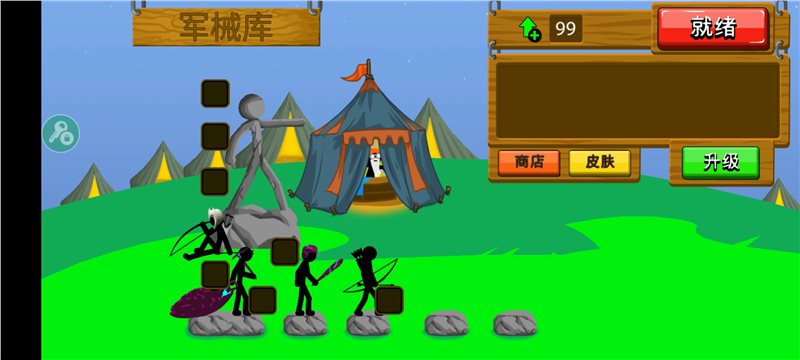 3、你需要尝试使用大量的金币来提升自己的火柴人军队,快来试试。