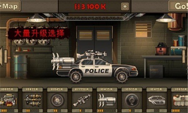 游戏中玩家们及时失败了也可以获得金币,金币可以让我们对汽车进行升级,如提高汽车的加速、防御能力等等,还可以在汽车上配置武器从而将僵尸们消灭在远处,而这些装备对于玩家们过关来说无疑是最重要的了。