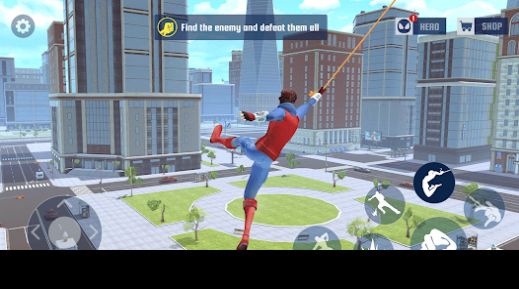 2、玩家可以变身帅气的绳索蜘蛛英雄,通过3D城市的精彩冒险。