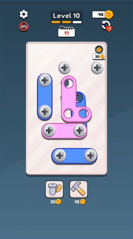 各位在闯关的时候还能选择使用提供的道具来帮助解开螺丝。