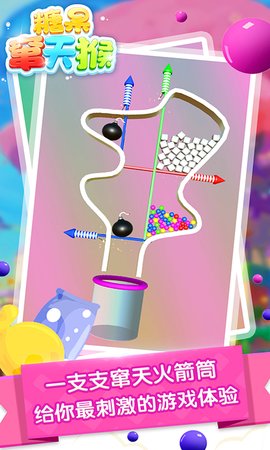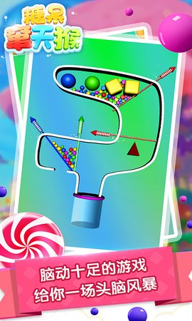 1、糖果窜天猴这个游戏也是类似的玩法。玩家需要拉动飞猴,让所有的糖果进入底部的玻璃瓶中。